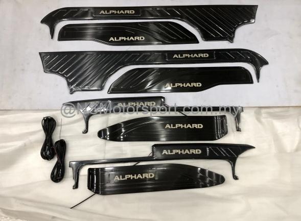 ALPHARD AGH30 GGH30 FULL UPPER LOWER LED SIDE SCUFF PLATE DOOR STEP BLACK-P1205696